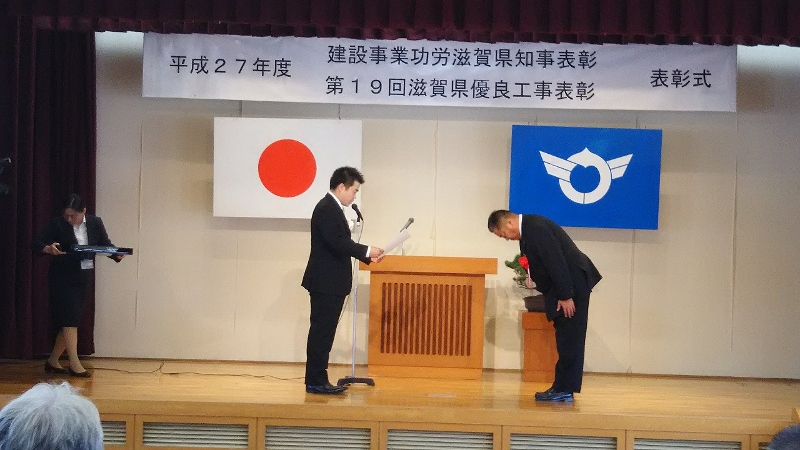 平成27年10月14日に平成27年度(第19回)滋賀県優良工事表彰式がありました。